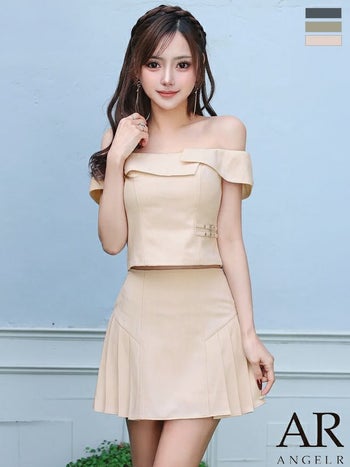 キャバドレス Angel R エンジェルアール セットアップ プリーツスカート 2way オフショルダー 肩開き レイヤード フレアミニドレス