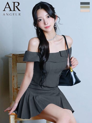 3. 予約商品【2月中旬入荷予定】【Angel R/エンジェルアール】セットアップ 肩開き レイヤード プリーツスカート 2way オフショルダー フレアミニドレス (AR26207)