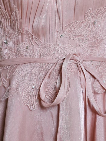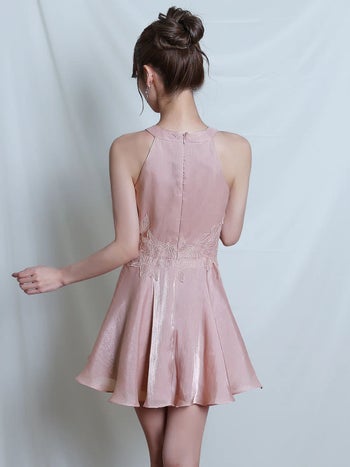 3. 予約商品【5月中旬入荷予定】【Angel R/エンジェルアール】ウエストリボン ホルターネック ギャザー 刺繍 フラワーメッシュ フレアミニドレス (AR26307)