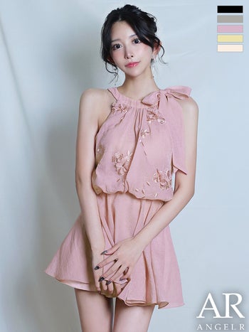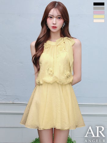 キャバドレス Angel R エンジェルアール ノースリーブ シフォン ネックリボン フラワー フェミニン シアー フレアミニドレス