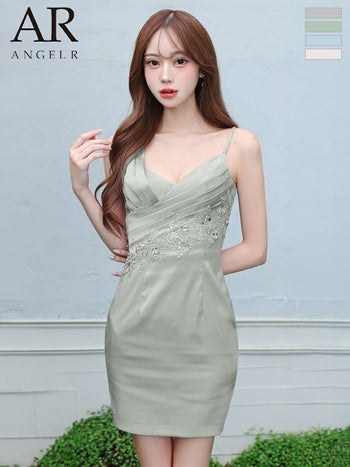 XSあり!上品な華やかさを演出する一着♪ 予約商品【2月中旬入荷予定】【Angel R/エンジェルアール】ノースリーブ アシンメトリーデザイン バストタック フラワーレース ビジュー キャミソール タイトミニドレス (AR26812)