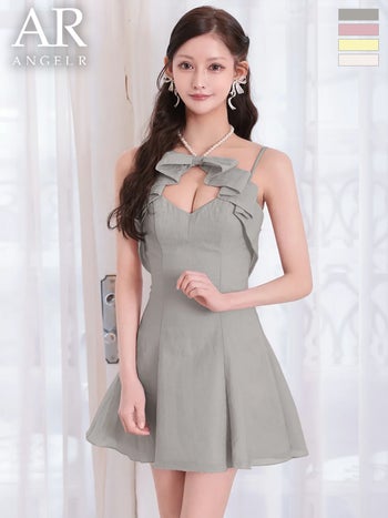 XSあり!リボンモチーフが目を惹く♡ 【Angel R/エンジェルアール】ホルターネック パールチェーン フロントリボン バストカット ビジュー フレアミニドレス (AR26818)