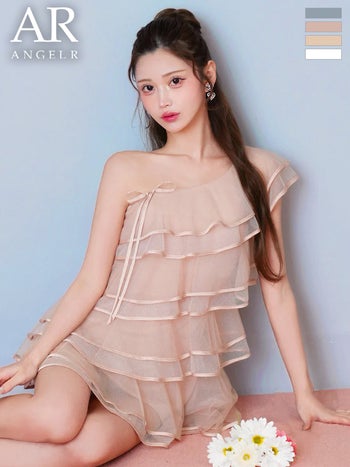 キャバドレス Angel R エンジェルアール ティアードフリル サテン シフォン リボン ワンショルダー チュール フレアミニドレス