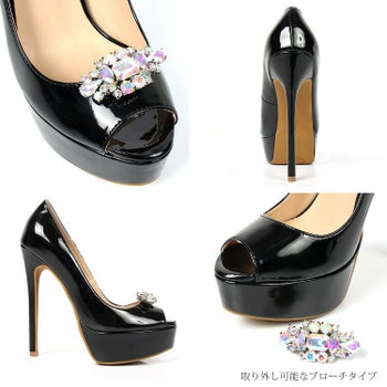 14cmヒール☆気分やスタイルに合わせてお楽しみ頂ける☆ 【Angel R/エンジェルアール】ストーンブローチ付き エナメル ハイヒール (SH023li)