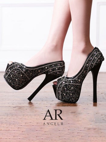 4. 予約商品【3月中旬入荷予定】【Angel R/エンジェルアール】 ラインストーンラメ オープントゥハイヒール (SH028)