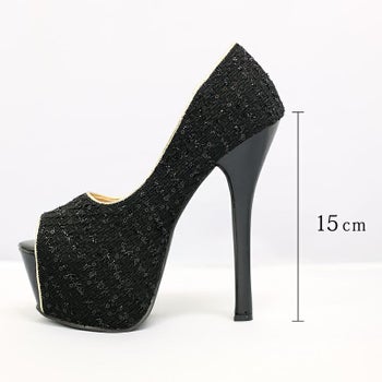 15cmヒール☆上品さと華やかさを演出する☆ 【Angel R/エンジェルアール】スパンコール ツイード オープントゥハイヒール (SH035)