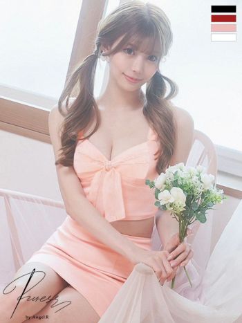 キャバドレス PURESS ノースリーブ オープンバスト セットアップ ガーリー バストリボン ビジュー タイトミニドレス