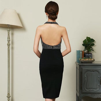 3. 【Veautt/ヴュート】ドレープ ビジュー 切り替え サイドジップ シアー ひざ丈ドレス(VT022402)