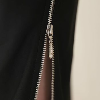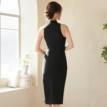 3. 【Veautt/ヴュート】ネックビジュー チェーン ホルターネック オープンバストタック ジップデザイン スリット タイト ひざ丈ドレス(VT022405)
