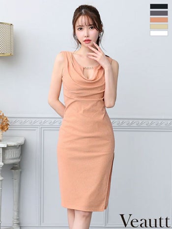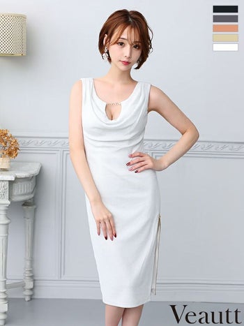 キャバドレス Veautt ヴュート ジップデザイン バストカット ノースリーブ チャーム セクシー スリット タイト 膝丈ドレス