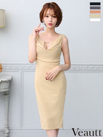 XSあり!大人レディーの品格が高まる一着♡ 【Veautt/ヴュート】ジップデザイン バストカット ノースリーブ チャーム セクシー スリット タイト 膝丈ドレス (VT022419)