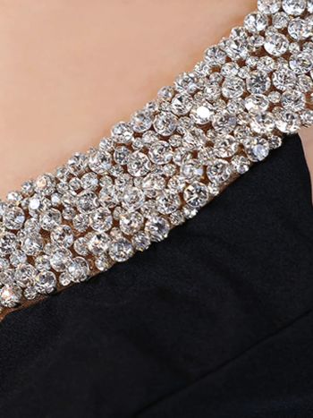 3. 【Veautt/ヴュート】ワンショルダー ジップデザイン スリット ビジュー セクシー バストカット 膝丈ドレス (VT022506)