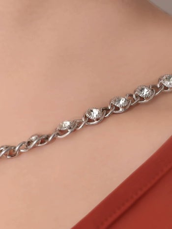 3. 【Veautt/ヴュート】ノースリーブ アシンメトリー デコルテカット ビジューチェーン シアー スリット エレガント 膝丈ドレス (VT022523)