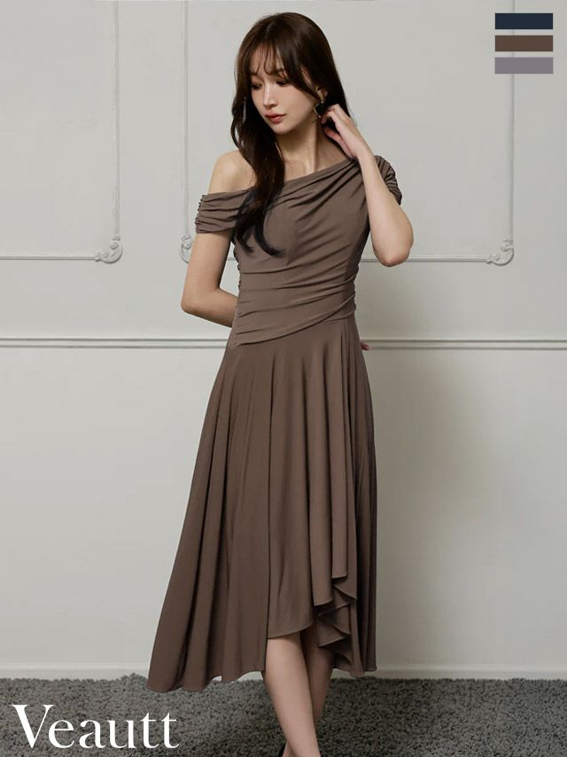 XSあり!落ち着きを上品さを演出♡ 【Veautt/ヴュート】アシンメトリー ドレープ ワンショルダー エレガント Aラインロングドレス(VT022527)