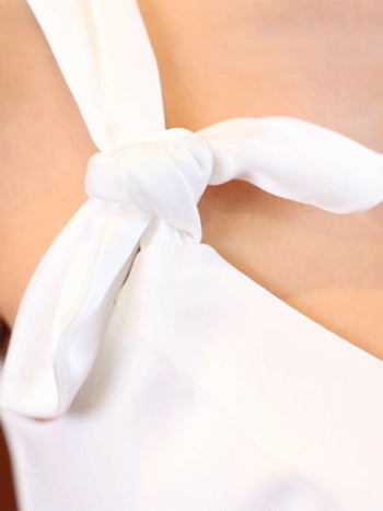 4. 【Veautt/ヴュート】オープンバスト ノースリーブ ショルダーリボン フロントボタン スリット エレガント 膝丈ドレス (VT032502)