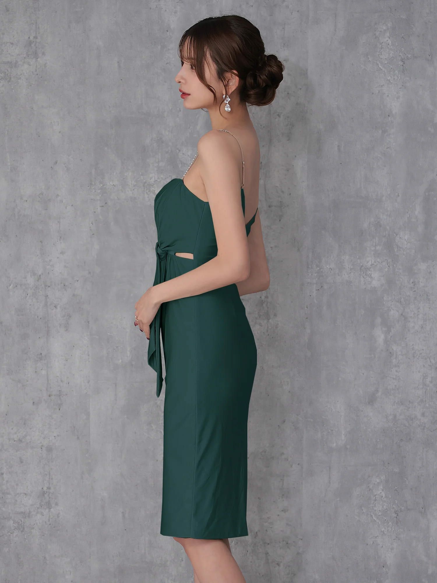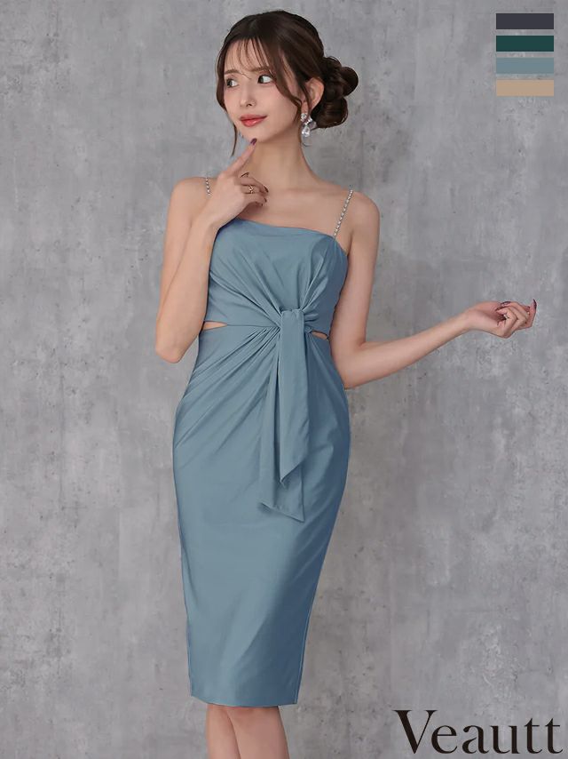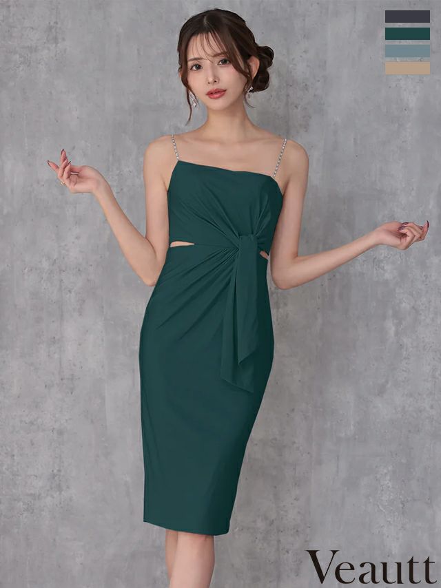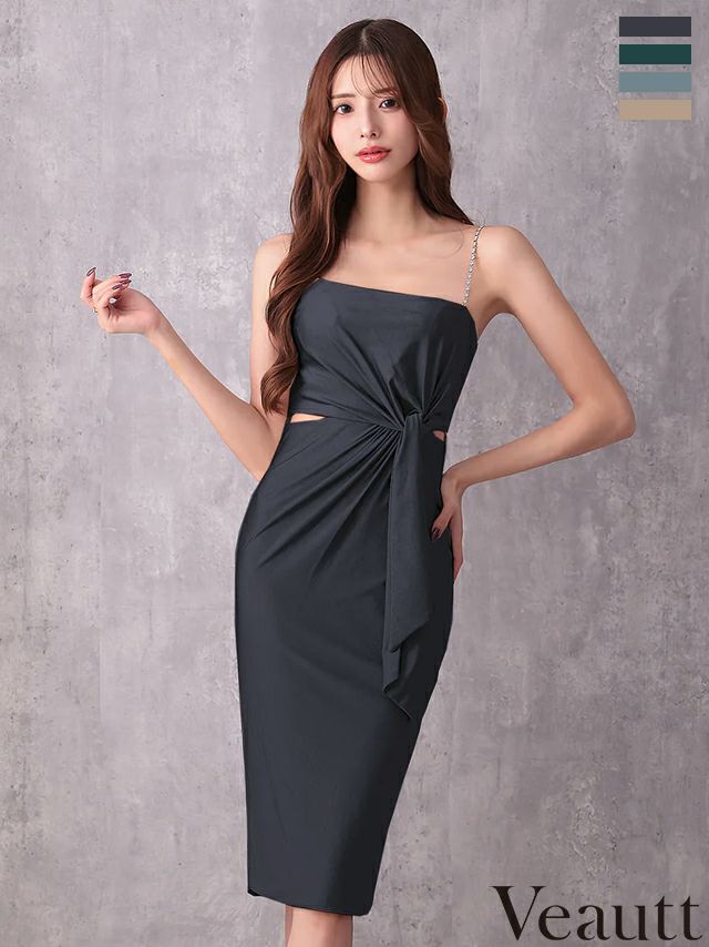 キャバドレス Veautt ヴュート キャミソール チェーン ウエストカット タックデザイン ワンカラー 膝丈ドレス