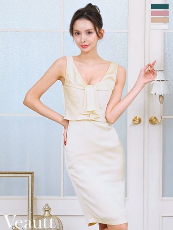 キャバドレス Veautt ヴュート セクシー オープンバスト ボウタイデザイン ノースリーブ スリット サテン 膝丈ドレス