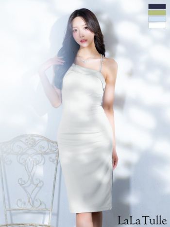 キャバドレス Veautt ヴュート サテン ジップデザイン アシンメトリー キャミソール セクシー 膝丈ドレス