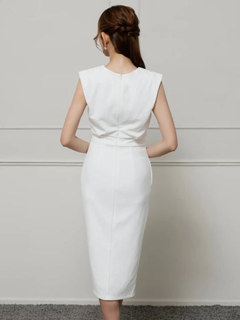 3. 【Veautt/ヴュート】ウエストマーク ボタン ワンカラー ノースリーブ シンプル スリット 膝丈ドレス (VT082527)