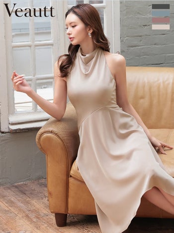 キャバドレス Veautt ヴュート ワンカラー ノースリーブ ネックデザイン アシンメトリー 膝丈ドレス