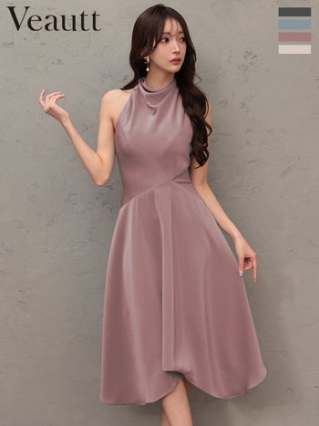 XSあり!上品さを纏う一着♪ 【Veautt/ヴュート】ネックデザイン アシンメトリー ワンカラー ノースリーブ 膝丈ドレス (VT022605)