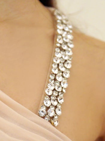 キャバドレス Veautt ヴュート ショルダービジュー アシンメトリー ノースリーブ シアー ラメ ワンカラー タイト 膝丈ドレス