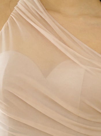 キャバドレス Veautt ヴュート シアー ラメ ワンカラー ショルダービジュー アシンメトリー ノースリーブ タイト 膝丈ドレス