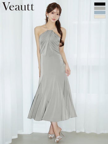 3. 予約商品【4月下旬入荷予定】【Veautt/ヴュート】ドレープ フレア ホルターネック ビジューチェーン 膝丈ドレス (VT082611)