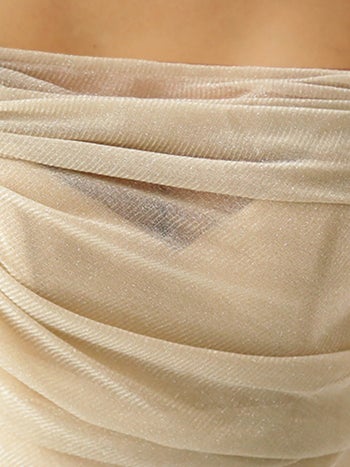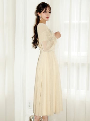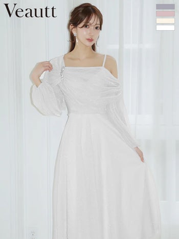 3. 予約商品【4月下旬入荷予定】【Veautt/ヴュート】ビジュー ラメ フレア 長袖 アシンメトリーデザイン ドレープ 膝丈ドレス (VT082612)