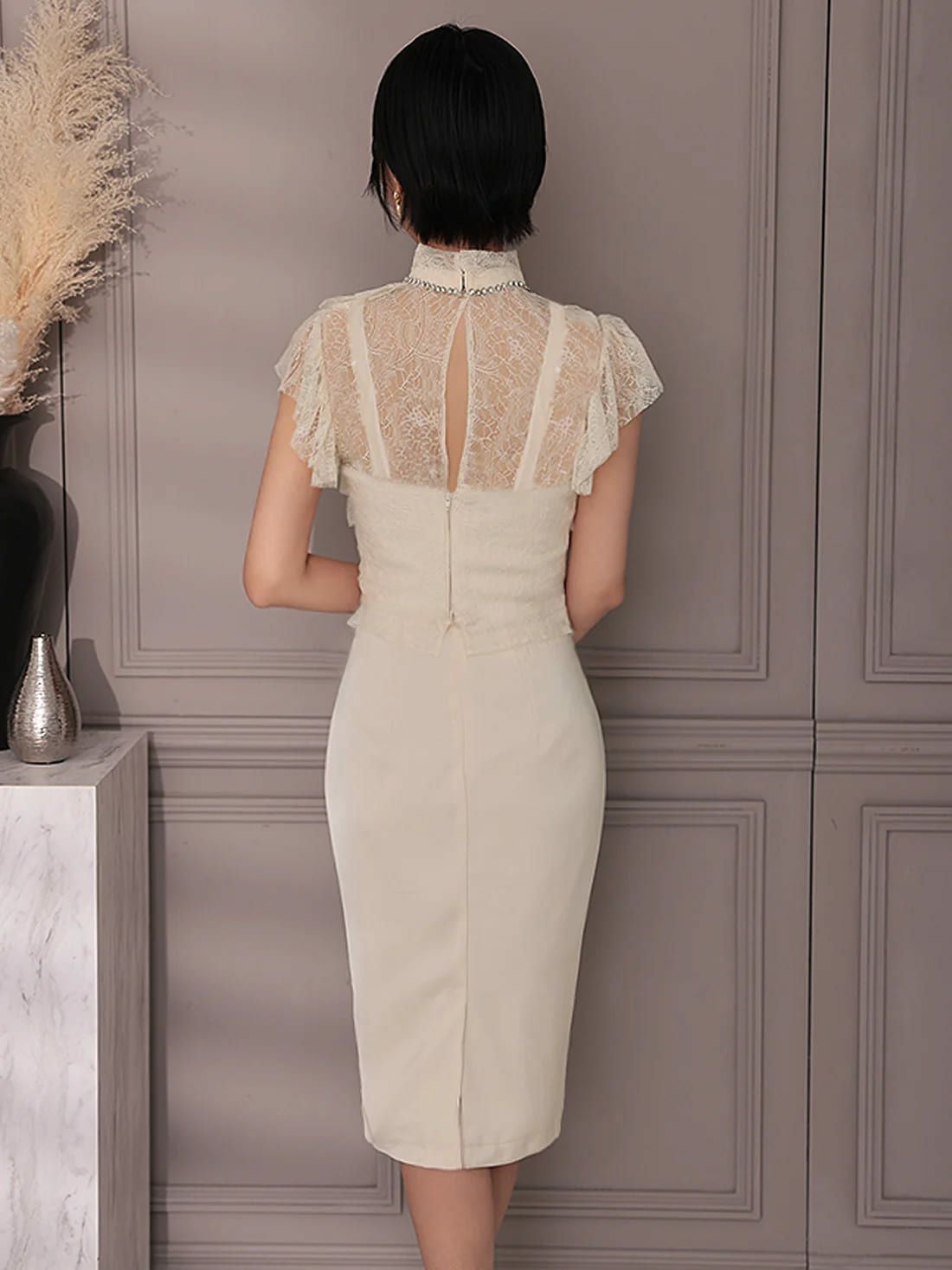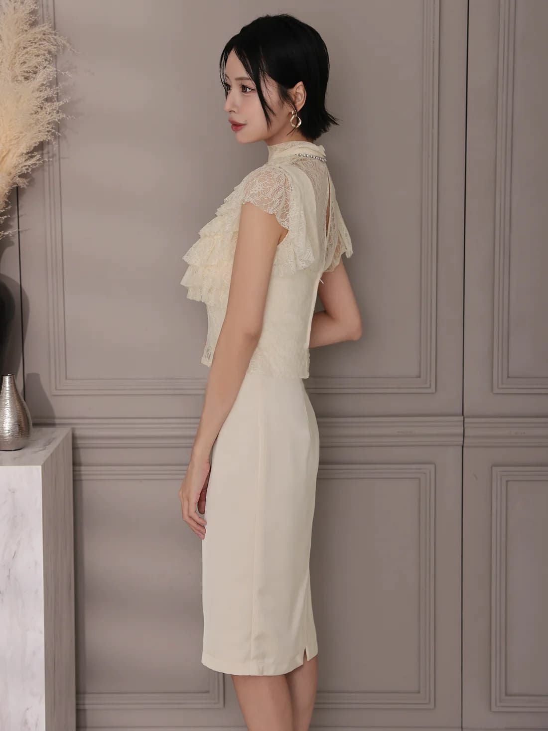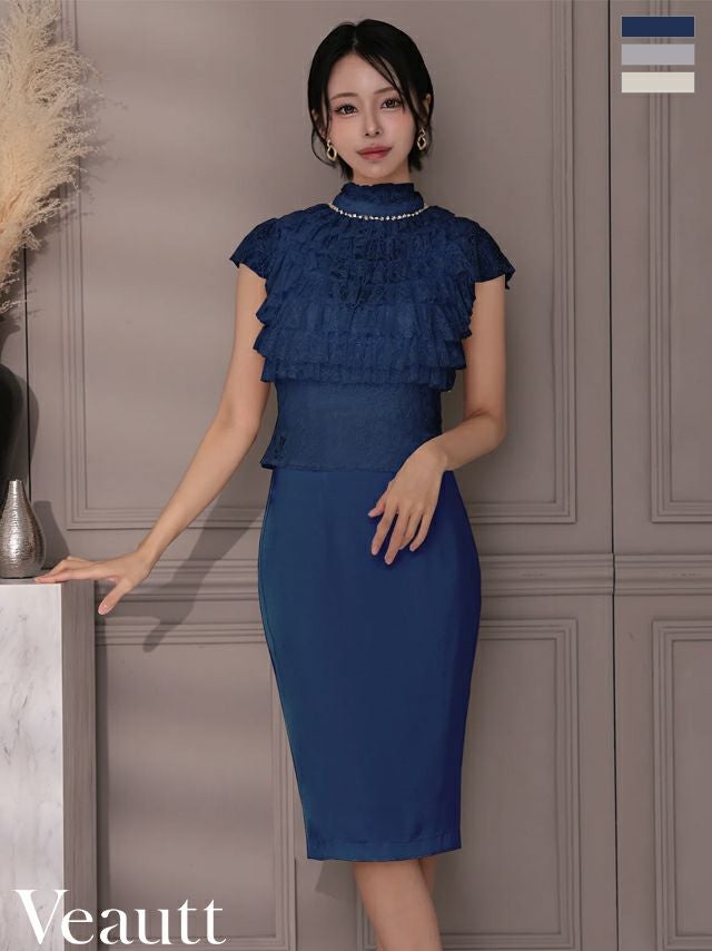 他の画像を見る XSあり!華やかなトップスライン♪ 【Veautt/ヴュート】フリル ビジュー 半袖 エレガント ハイネック フロントレース 膝丈ドレス (VT082520) ¥ 30,580 税込 詳細を見る お気に入りに登録する