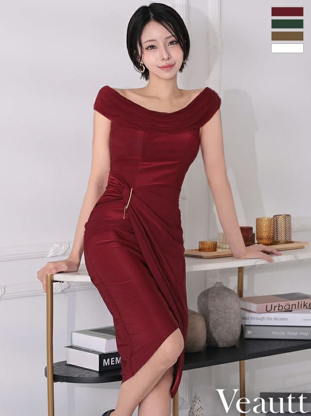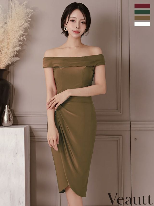 他の画像を見る XSあり!優美なシルエットに導く♪ 【Veautt/ヴュート】2way ウエストチャーム オフショルダー ワンカラー ラップ風 膝丈ドレス (VT022518) ¥ 29,480 税込 詳細を見る お気に入りに登録する
