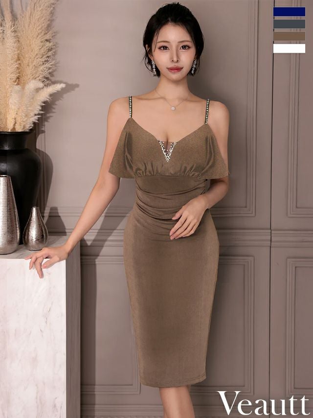 他の画像を見る XSあり!エレガントな装い♪ 【Veautt/ヴュート】フリル ウエストタック キャミソール Vカット ビジュー メッシュ 膝丈ドレス (VT082519) ¥ 29,480 税込 詳細を見る お気に入りに登録する