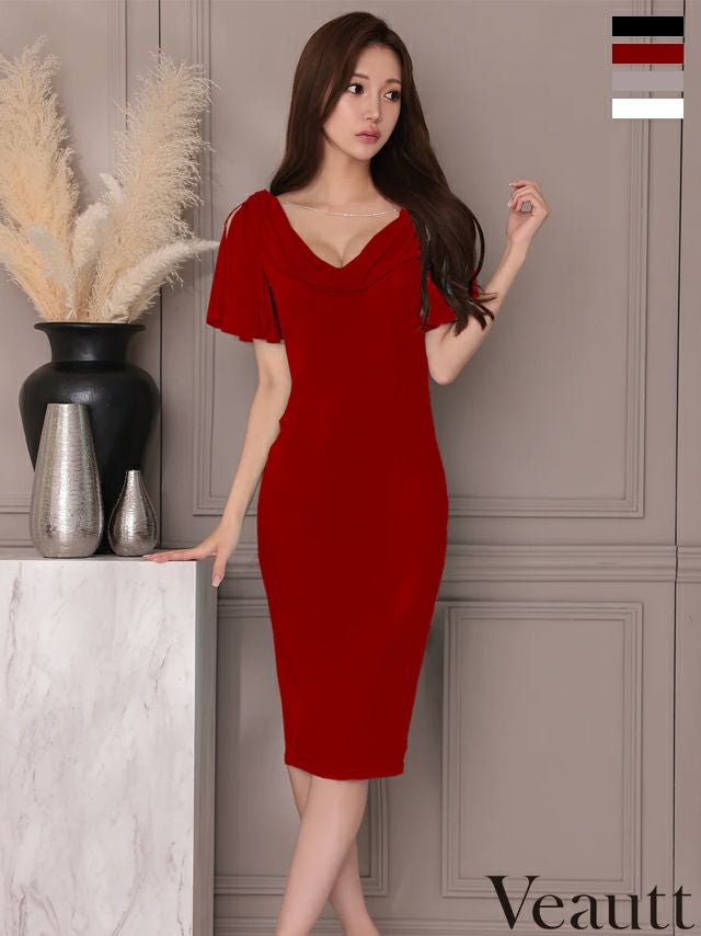 他の画像を見る XSあり!上品な丈感と計算されたシルエット♪ 【Veautt/ヴュート】半袖 フレア スリット パールチャーム エレガント バストドレープ 膝丈ドレス (VT022519) ¥ 30,580 税込 詳細を見る お気に入りに登録する