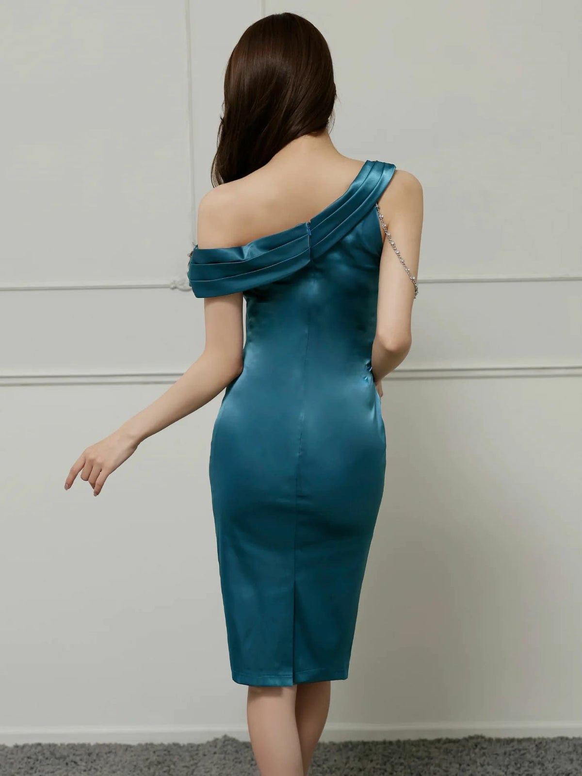他の画像を見る XSあり!サテン素材の美しい光沢♡ 【Veautt/ヴュート】アシンメトリー ワンショルダー ビジューチェーン サテン エレガント スリット 膝丈ドレス (VT082525) ¥ 28,380 税込 詳細を見る お気に入りに登録する