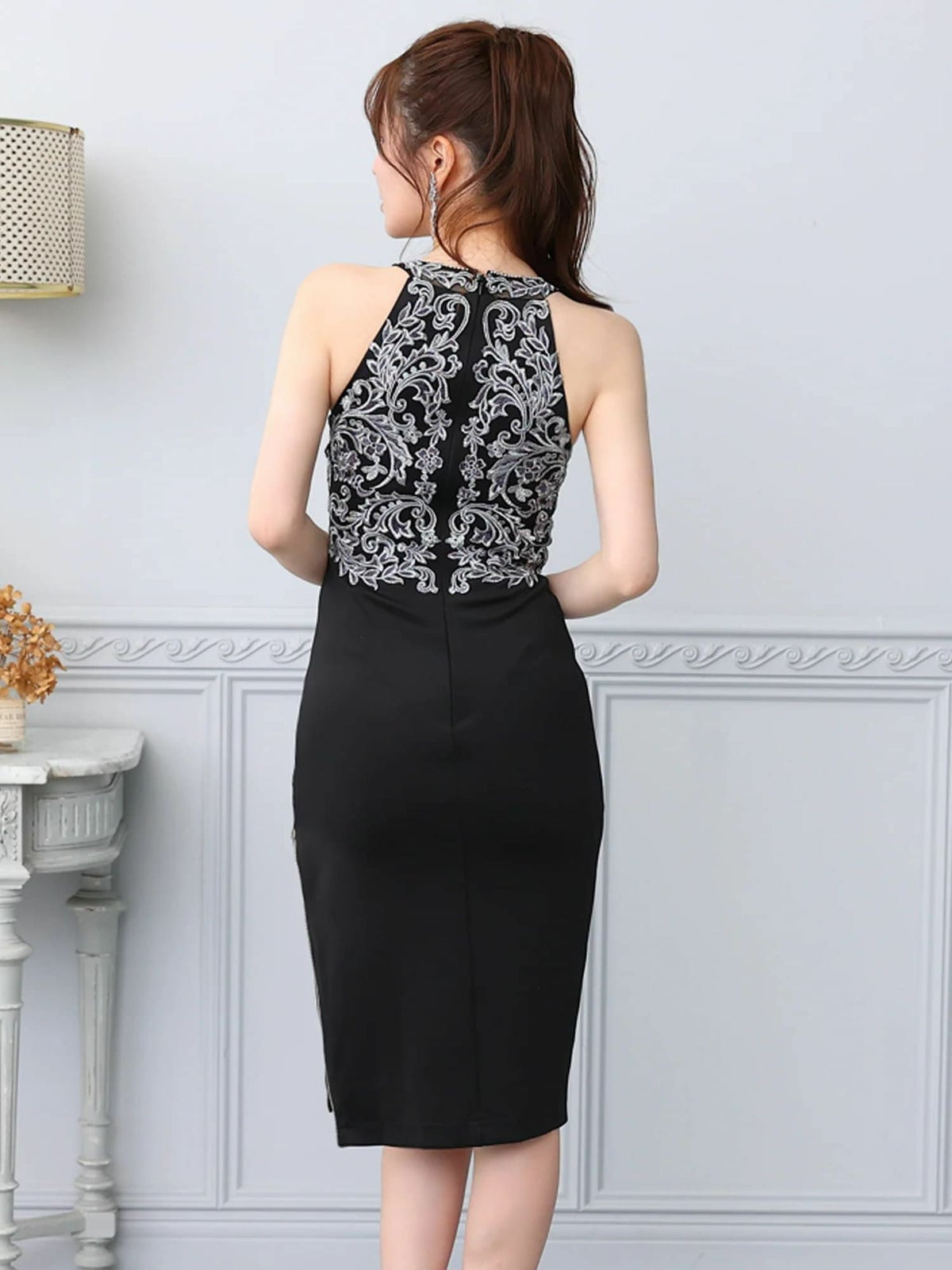 他の画像を見る XSあり!高級感抜群♪ 【Veautt/ヴュート】ジップデザイン 刺繍 ビジュー セクシー オープンバスト ホルターネック 膝丈ドレス (VT032412) ¥ 30,580 税込 詳細を見る お気に入りに登録する