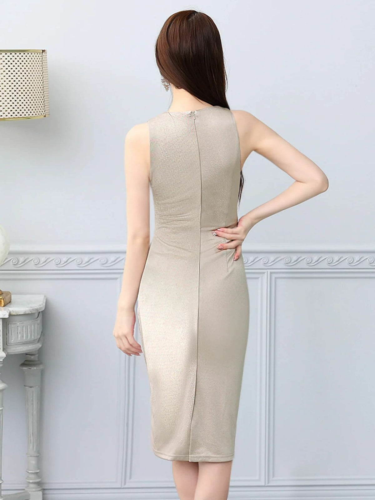 他の画像を見る XSあり!女性らしいシルエットを強調♪ 【Veautt/ヴュート】オープンバスト ノースリーブ くびれ透け チェーン ラメ セクシー 膝丈ドレス (VT022501) ¥ 29,480 税込 詳細を見る お気に入りに登録する