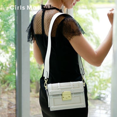 キャバドレスにピッタリなハンドバッグ♪ 【GirlsMall/ガールズモール】スタッズ デザイン ワンカラー 2WAY ハンド バッグ(ホワイト/ブラック)