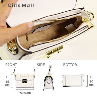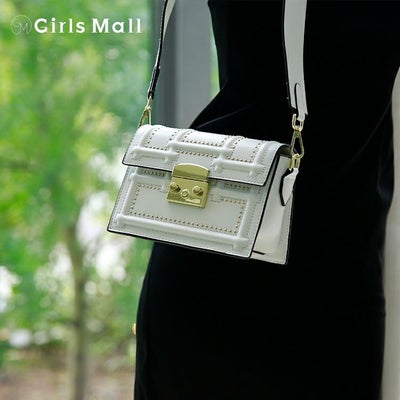 4. 【GirlsMall/ガールズモール】スタッズ デザイン ワンカラー 2WAY ハンド バッグ(ホワイト/ブラック)