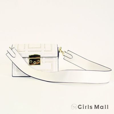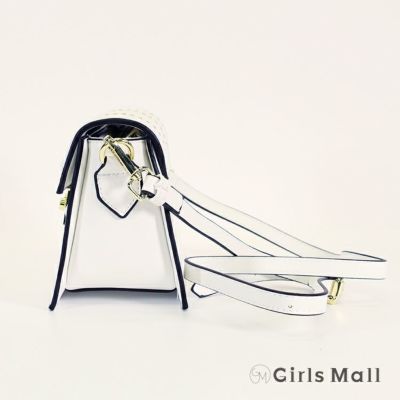 4. 【GirlsMall/ガールズモール】スタッズ デザイン ワンカラー 2WAY ハンド バッグ(ホワイト/ブラック)