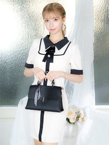 4. 【LaLaTulle】2way ショルダー スカーフ付き ワンカラー シンプル ミニバッグ