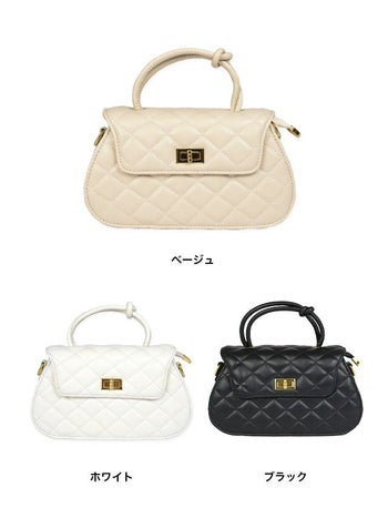 結びハンドル スクエア型 2Wayキルティングバッグ