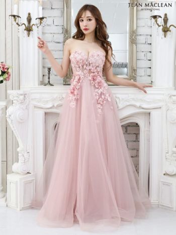 3. 【JEANMACLEAN/ジャンマクレーン】フラワートップパフスリーブ付き ベアトップ オフショルダー バースデー フレアロングドレス(21227)