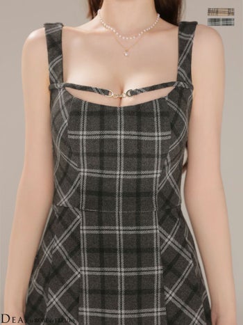 キャバドレス DEA. ROBE de FLEURS ディア ローブドフルール チェック柄 ふんわり起毛 フェミニン キャミソール プリーツスカート フレアミニドレス