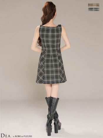 4. 【DEA.by ROBE de FLEURS/ディア】チェック柄 ふんわり起毛 フェミニン キャミソール プリーツスカート フレアミニドレス (DE4608)