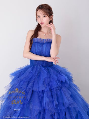 4. 【couture an/クチュール アン】ワンカラー フリル ベアトップ チュール レースアップ バースデー Aラインロングドレス(aocwd051)