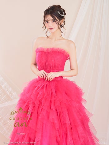 キャバドレス couture an ワンカラー フリル チュール ベアトップ レースアップ バースデー Aラインロングドレス