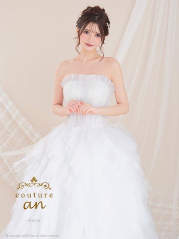 3. 【couture an/クチュール アン】ワンカラー フリル チュール レースアップ ベアトップ バースデー Aラインロングドレス(aocwd051)