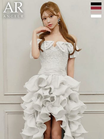 キャバドレス Angel R エンジェルアール ハートカット リボン ビジュー ウエストマーク フリル バースデー 2way オフショルダー 肩あき ロングテールドレス