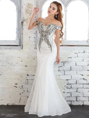 3. 【JEANMACLEAN/ジャンマクレーン】ビジュ マーメイド オフショルダー タイトロングドレス[カレン/高級キャバドレス着用]