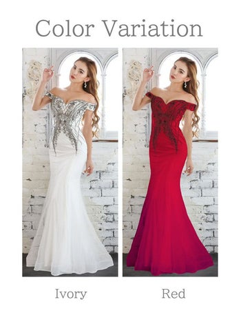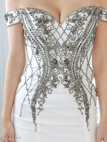 美しいビジュモチーフのオフショルダーのロングドレス。